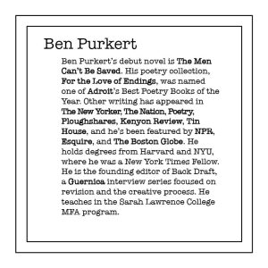 - Tagline for Ben Purkert & The Men Can’t Be Saved