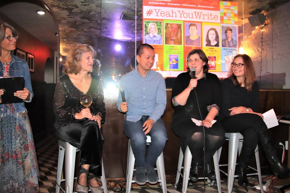 Open Mic Readers: Nicole Crawford, Elaine Terriss, Mattie Wyndham, and Ellen Zaroff (pictured)