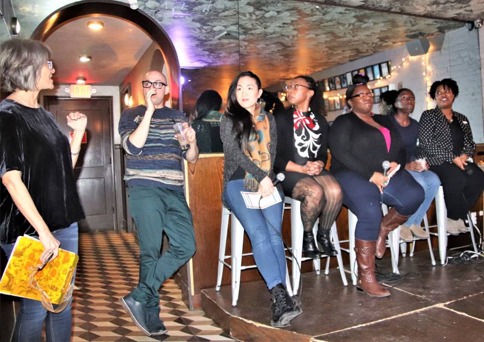 Six authors read in the lovely Garden District lounge at Bo’s Kitchen & Bar Room.